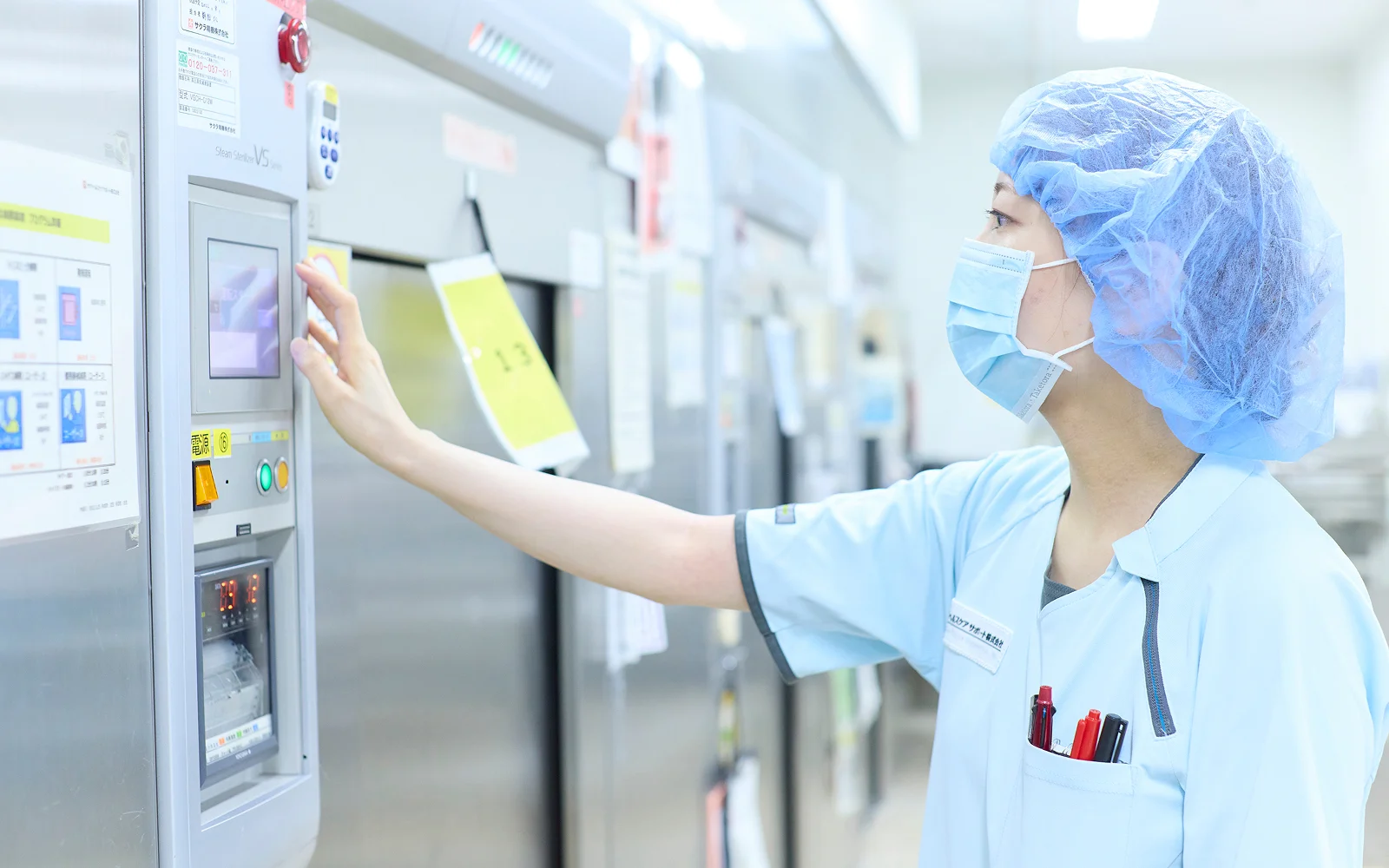 医療現場で使用する器材の洗浄・滅菌や病院内の物品管理など、院内での業務が、当社の仕事です。