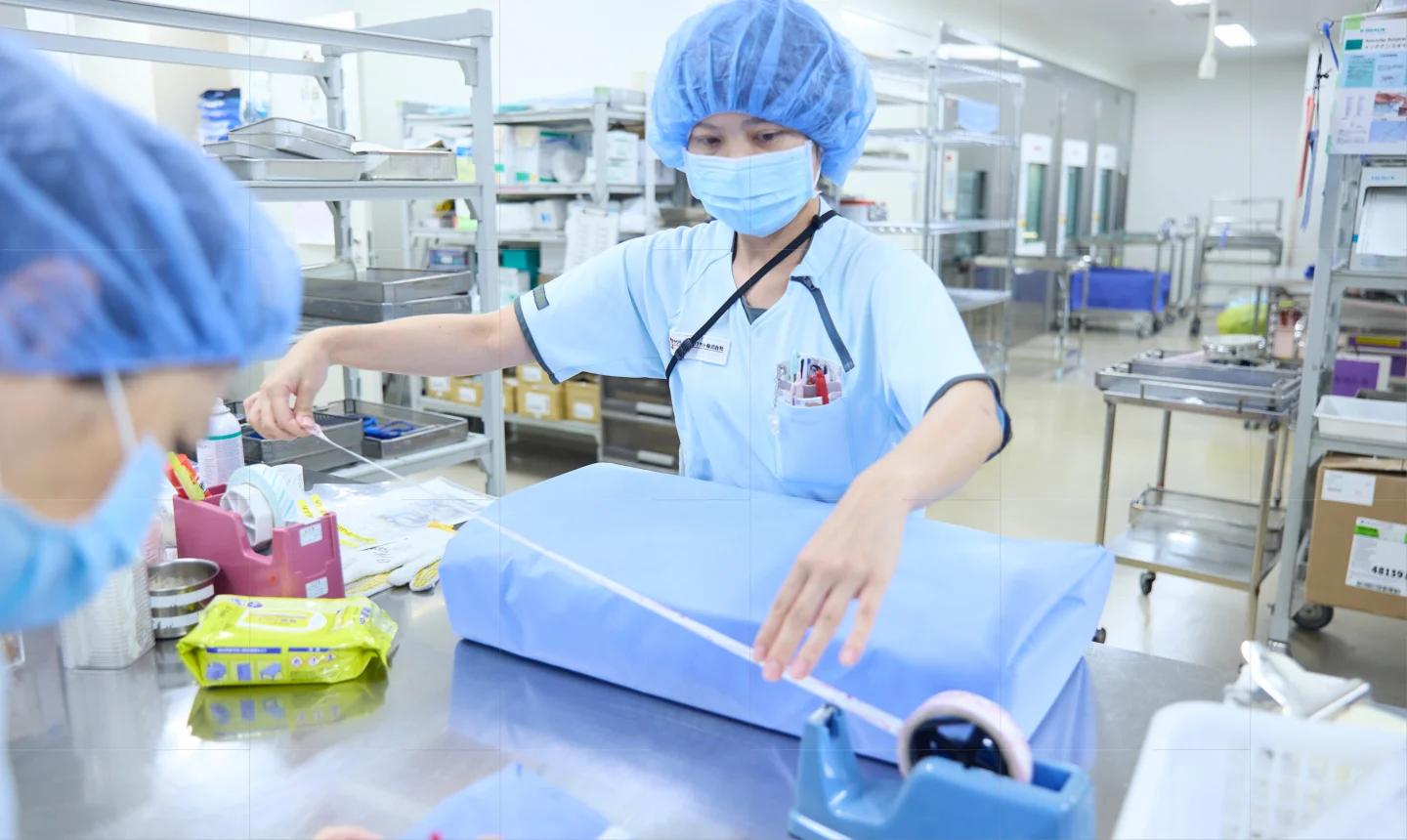医療現場で使用する器材の洗浄・滅菌や病院内の物品管理など、院内での業務が、当社の仕事です。