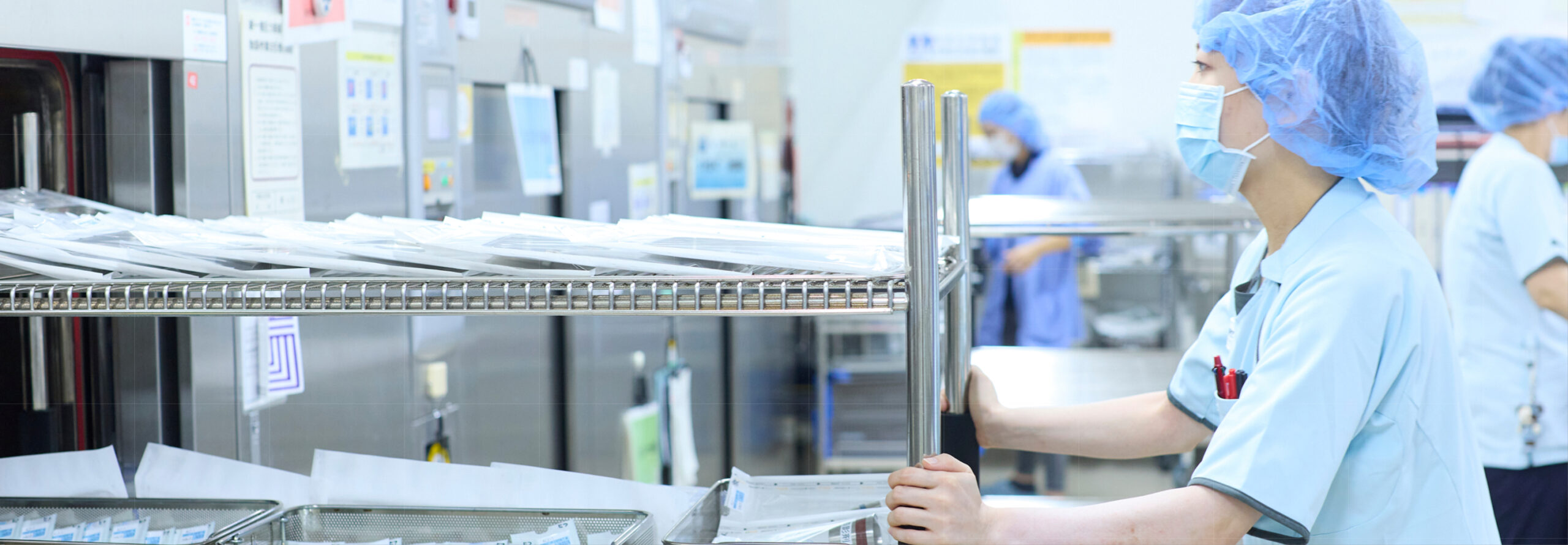 当社は、医療法の基準に適合する医療関連サービスの認定事業者です。洗浄・滅菌業務、手術室周辺業務、SPD(院内物流)業務、内視鏡洗浄・消毒業務の4つの分野に、それぞれの専門スキルを持つスタッフを配置します。また、施設に最適なソリューションを提案し、お客さまの良きパートナーとして医療安全と病院経営の効率化に貢献します。