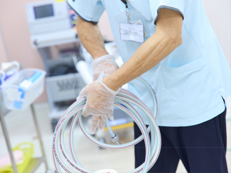 手術室の術間、術後の清掃、医療機器の清拭、ガウンテクニック、術前準備、手術室の物品定数管理など、手術室の周辺業務を受託・代行します。手術が円滑に進むように多岐にわたる業務でサポートし、医療スタッフがより患者さまに寄り添える環境作りをお手伝いします。